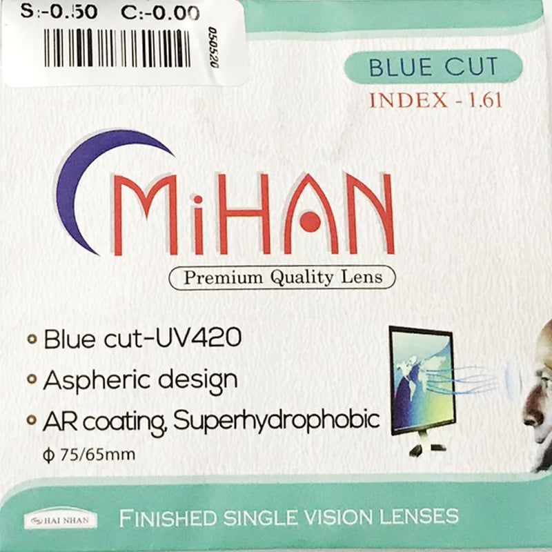 Tròng kính MiHAN 1.61 chống phản quang, chống ánh sáng xanh, chiết suất cao 1.61 và thiết kế AS giảm cầu sai, siêu mỏng. Lớp phủ chống xước, chống phản quang, giúp mắt kính bền bỉ, chống chói mắt, chống lóa đèn; Tích hợp tính năng chống ánh sáng xanh và cản 100% tia UV, bảo vệ mắt toàn diện, hoàn hảo cho mọi nhu cầu người dùng.